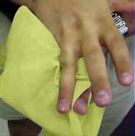 The iodine wiper was evaluated under actual use conditions to determine if it would be effective in reducing microbial levels on human hands. As discussed previously, contamination from hands is one of the most likely sources of food microbial levels. The debate continues whether it is possible to thoroughly decontaminate or disinfect human skin. As a result, current food code regulations require that workers handling food wear gloves. Gloves become of increasing importance when workers either incorrectly wash their hands or avoid the practice altogether. Table 8 summarizes the results of a study on the handwashing habits of people using public washrooms sponsored by the Allegheny County, PA Department of Health.